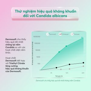 - Khả năng kháng khuẩn, kháng nấm: Đây là tiêu chí quan trọng nhất trong điều kiện sau bão. Các hoạt chất kháng khuẩn, kháng nấm được chứng minh khoa học (ví dụ: Dermosoft) sẽ giúp tiêu diệt hoặc ức chế sự phát triển quá mức của các mầm bệnh như nấm Candida và E.coli vốn đang bùng phát trong môi trường.