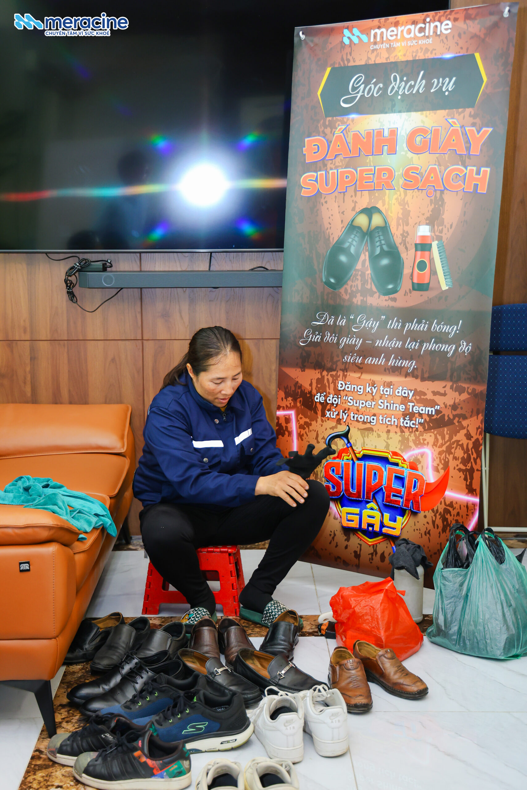 👞 Dịch vụ đánh giày sạch bong: Ai đi qua cũng phải ngoái nhìn vì độ bóng loáng của những đôi giày – là “minh chứng” cho phong độ đỉnh cao của các Super-Gậy trong ngày đặc biệt.