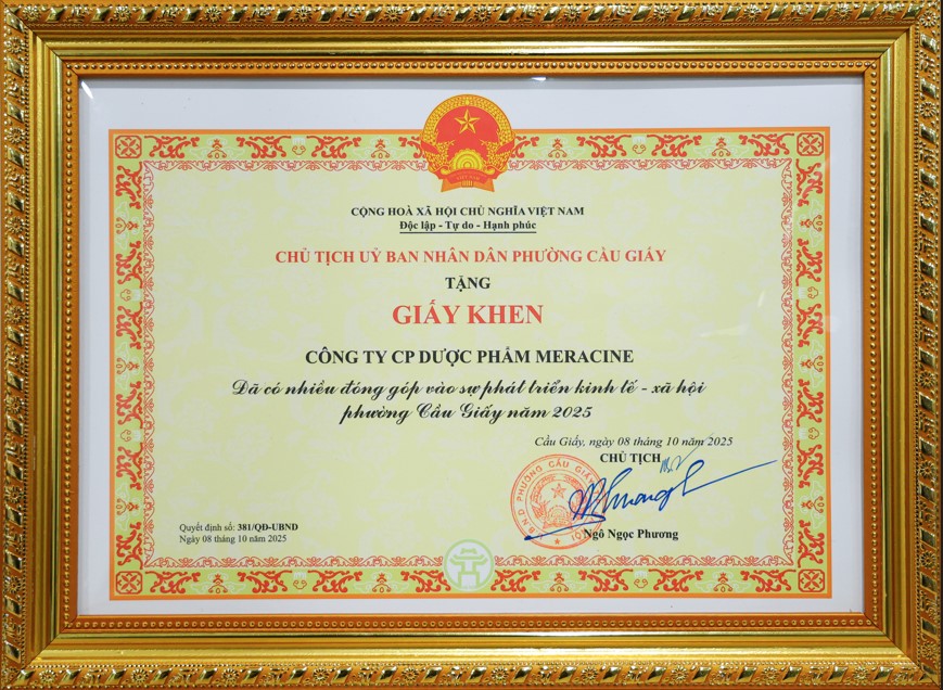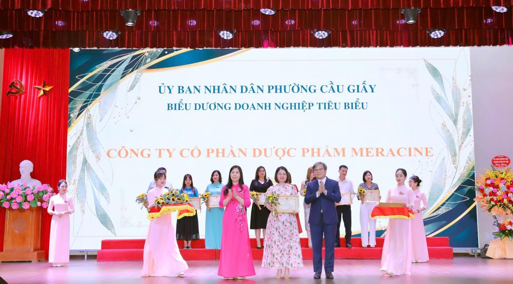 Trong không khí kỷ niệm 71 năm Ngày Giải phóng Thủ đô (10/10/1954 – 10/10/2025) và hướng tới Ngày Doanh nhân Việt Nam, ngày 10/10/2025, Đảng ủy – HĐND – UBND – Ủy ban MTTQ phường Cầu Giấy (Hà Nội) đã tổ chức Hội nghị gặp mặt, biểu dương doanh nghiệp, doanh nhân tiêu biểu năm 2025. Tại sự kiện, Công ty Cổ phần Dược phẩm Meracine vinh dự được UBND phường Cầu Giấy trao tặng Giấy khen vì có nhiều đóng góp cho sự phát triển kinh tế – xã hội năm 2025.