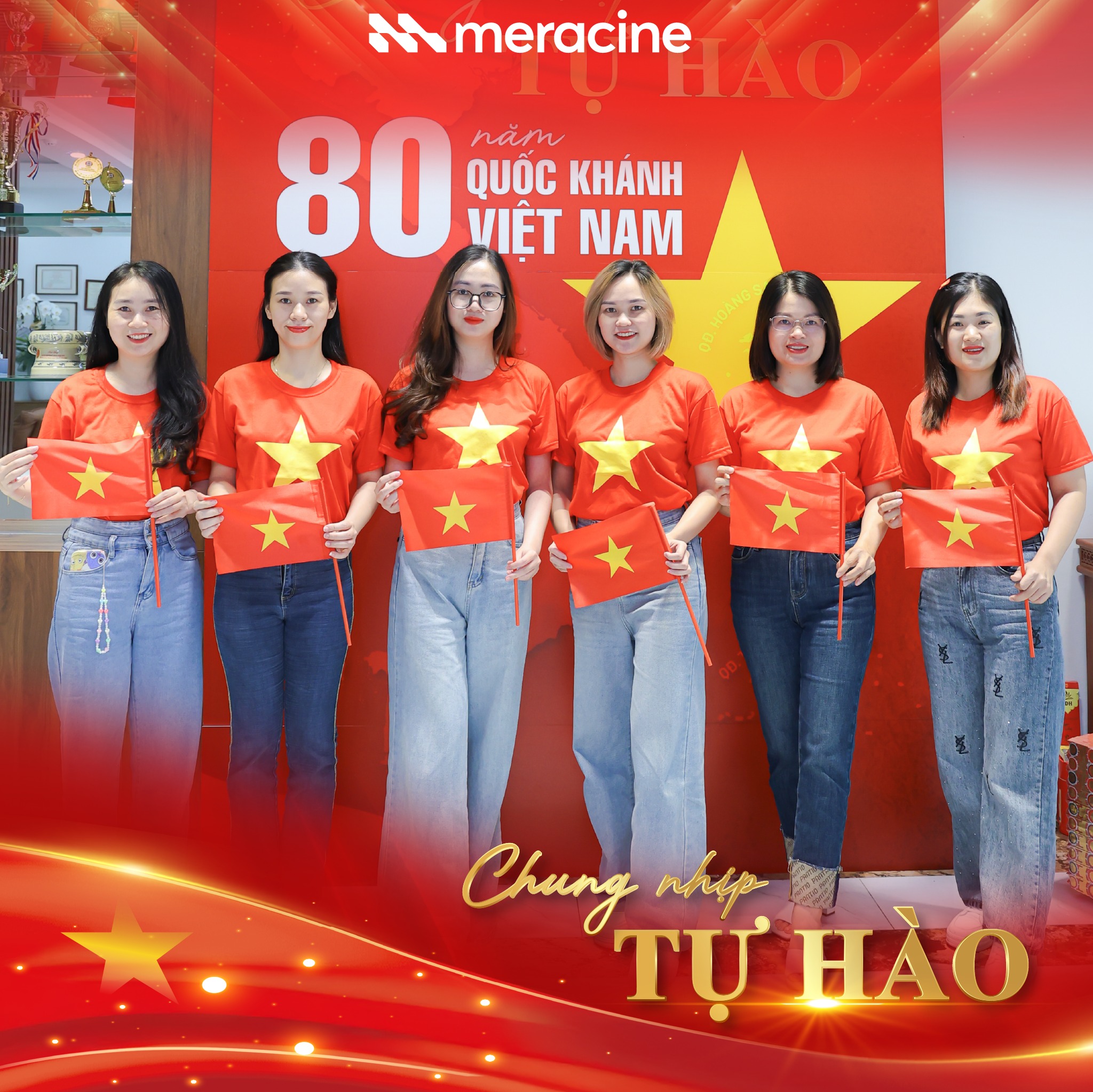 Những ngày này, từng góc văn phòng Meracine như khoác lên mình tấm áo mới rực rỡ. Cờ hoa tung bay, poster đỏ thắm cùng sắc áo đỏ sao vàng khiến không khí làm việc bừng sáng. Trong mỗi ánh mắt, nụ cười của cán bộ nhân viên, tinh thần phấn khởi và niềm tự hào dân tộc hiện hữu rõ rệt, tạo nên một “dòng chảy cảm hứng” xuyên suốt nơi công sở.