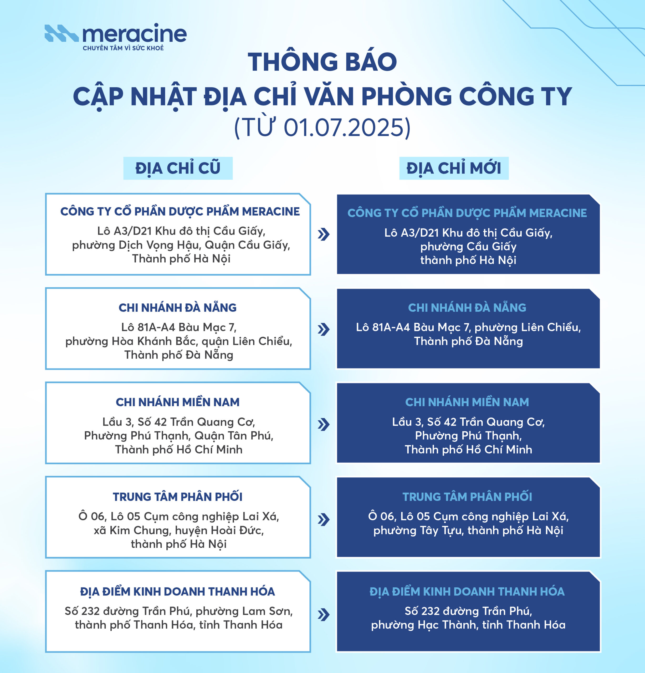 Thông tin chi tiết việc cập nhật địa chỉ của Dược phẩm Meracine như sau: